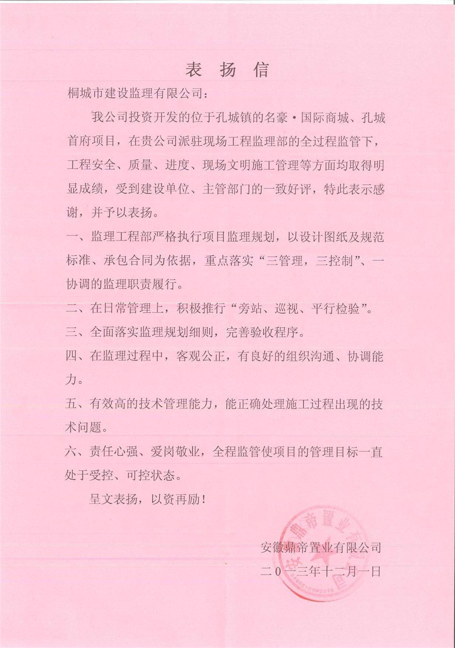 安徽鼎帝置业向我公司赠送锦旗和感谢信