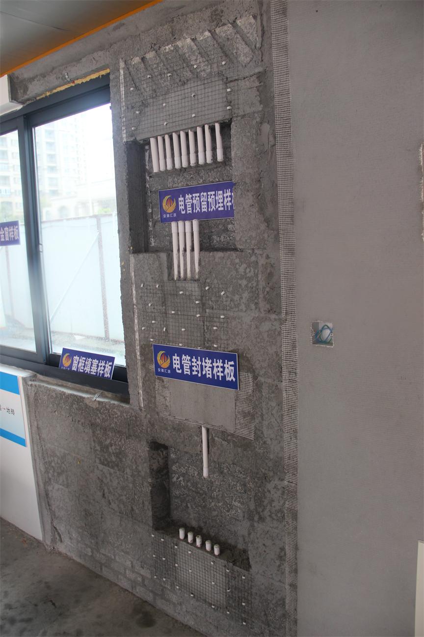 在现场,我们首先观摩到的是内墙地面顶棚平整、阴阳角顺直、布置合理的精装修样板套房;其次是样板工地精心制作的优质施工模型:厨卫地面和排水管安装工序、内墙装饰工序、建筑屋面工序、外墙装饰工序、强电箱样板、管线预留预埋、断桥铝窗等样品展示与操作工艺,于此同时还听取了施工单位技术负责人对以上各工序做法的详细讲解。