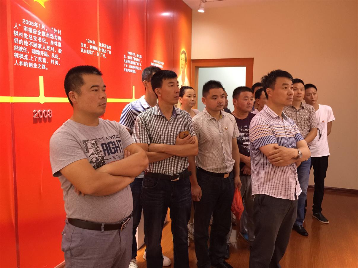 7月4日上午,市监理公司党支部书记高旭东同志带领班子成员和党员同志以及入党积极分子一行14人来到范岗镇樟枫村,参观宋福应同志先进事迹陈列馆,认真聆听讲解员介绍樟枫村原党总支书记宋福应生前全心全意为人民服务先进事迹和无私奉献的舍己精神,观看宋福应同志先进事迹记录片《五载走单骑