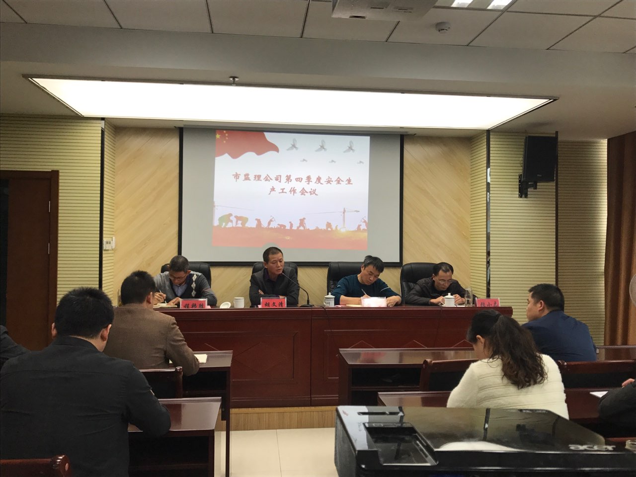 为进一步加强安全生产管理工作,杜绝各类质量安全事故的发生,同时也为贯彻“不忘初心,继续前进”的精神,2017年10月18日,在党的十九大召开之际,市监理公司组织全体员工召开第四季度安全生产工作会议,会议由汪海元总经理主持,市住建局胡文清副局长莅临参加会议。