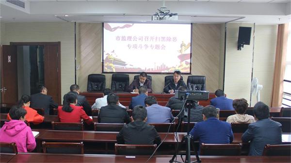 为深入推进扫黑除恶专项斗争取得实效,全面系统的深入推进扫黑除恶工作,10月18日上午,市监理公司组织召开扫黑除恶专项斗争专题会,班子成员及二级机构负责人参加会议,汪海元总经理主持会议。