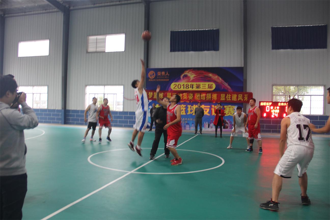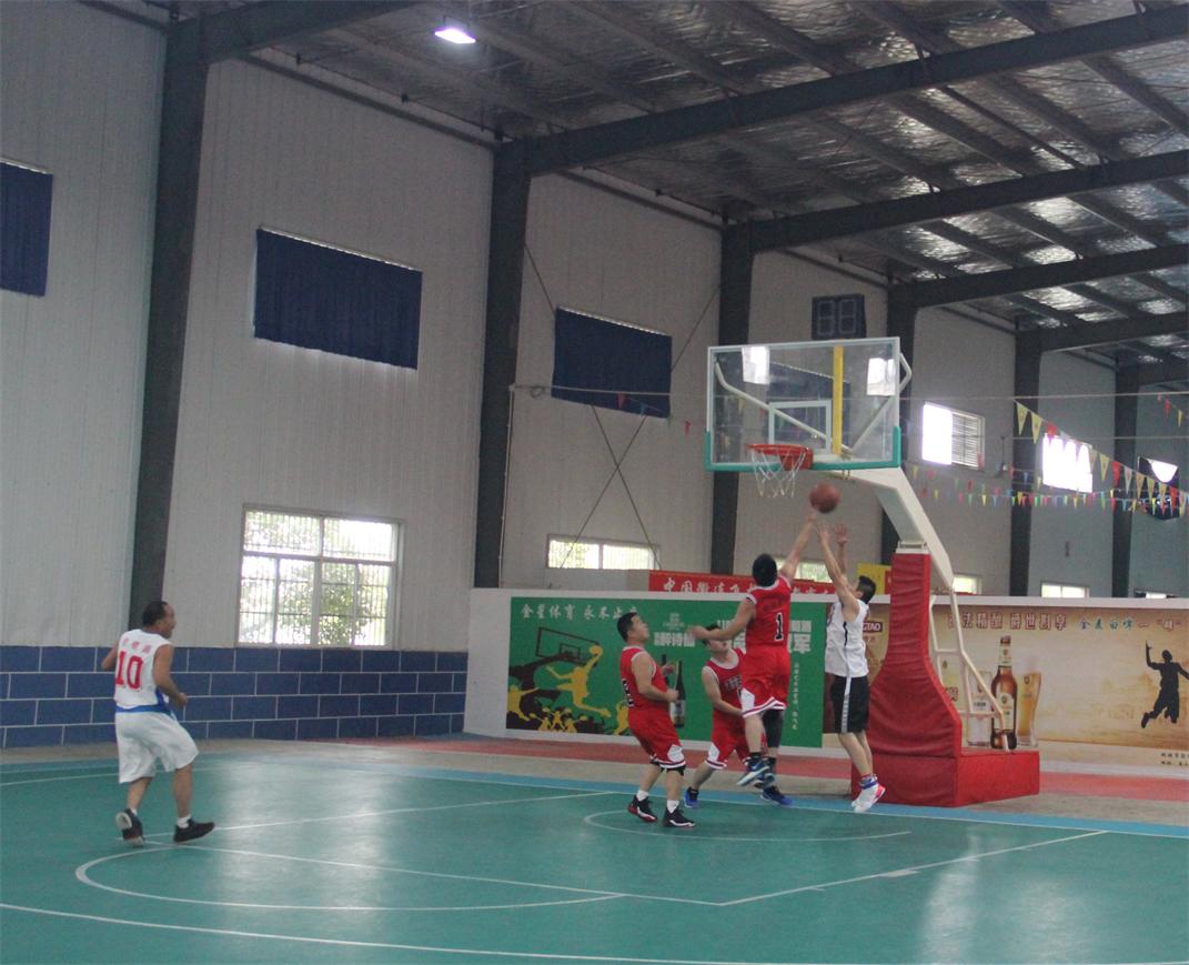 会后,公司追梦篮球队和自来水公司篮球队在金星篮球场进行友谊赛,公司总经理汪海元为友谊赛开球。