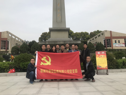 4月4日,市监理公司组织党员、入党积极分子、领导班子等十余名人员来到桐城市烈士陵园参加祭扫先烈活动。仰望纪念碑上“烈士英雄永垂不朽”几个刚劲有力的大字,在周围那郁郁葱葱的苍松翠柏的衬托下显得格外醒目。面对着革命英雄的墓碑,参与人员心情激动,思绪万千。活动开始后,党员敬献鲜花,在纪念碑前,监理人肃然站立,举起右手,重温入党誓词:“我志愿加入中国共产党,拥护党的纲领……”。激昂的声音回荡在整个革命烈士陵园上空,不绝于耳,振奋人心,全体参与人员向革命先烈默哀以表敬意。