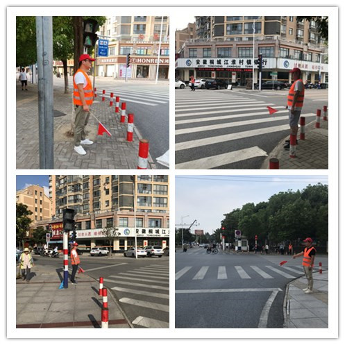 我公司参与执勤的二中路口,位于桐城二中旁,7:30——8:30的执勤时间以电动车送小孩的家长和上班族为主,因早上时间紧,不管什么人,大家都是行色匆匆,很急躁,只要能闯红灯,就坚决抓住机会,危险也随之增大。我们的文明劝导员们眼疾手快,及时的制止行人的危险动作,有时候也会遇到不理解的人,但是大家依然本着文明劝导的遵旨,耐心劝导,分析利弊,还帮助有困难的市民安全过马路。