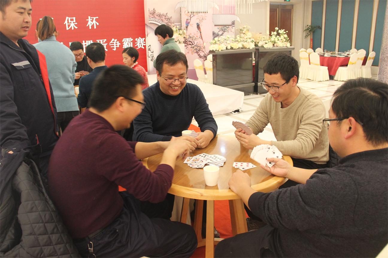 掼蛋比赛结束后,双方领导致新年贺词并颁奖。随后举行联欢活动,活动中双方员工再显身手通过踩气球、你来比划我来猜等小游戏将联欢活动的气氛推向高潮。