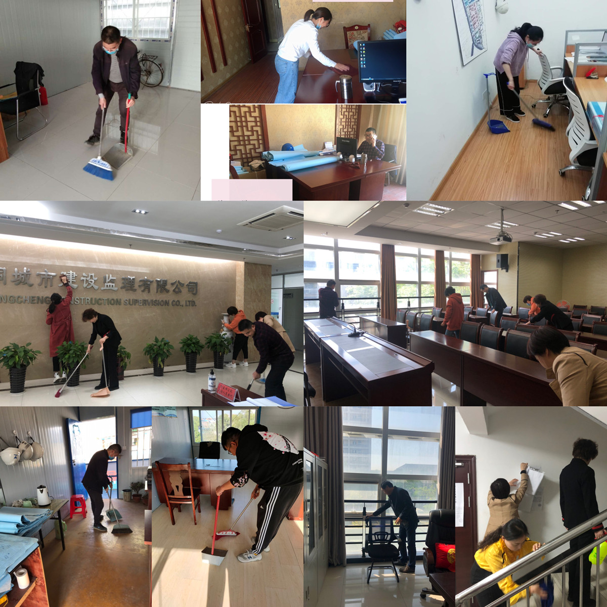 今年4月是第32个爱国卫生月,为贯彻落实习近平总书记系列重要讲话精神,通过深入开展爱国卫生运动月活动,助力打赢疫情防控阻击战。2020年4月28日市监理公司组织开展全公司范围内卫生大扫除活动,由公司办公室牵头,以各监理部为单位,要求各片区各监理部在规定时间内认真组织打扫、布置办公室等工作。