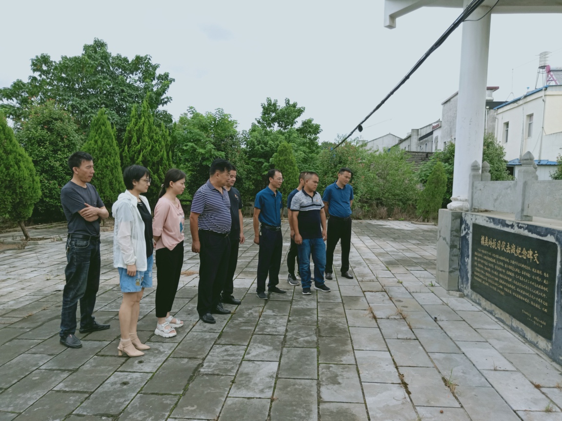 全体党员在纪念亭旁列队,怀着敬畏的心情,仔细品读亭上的碑文,聆听着党员方安全同志对纪念亭来历的讲解,回顾着往昔革命烈士的抗战英勇表现和取得了辉煌战绩,表现出了我们中国军队英勇无畏、死守家园的意志和决心,有力牵制了日军西进步伐,为后来的新四军二师和路西抗日根据地的建设和发展的重大影响。