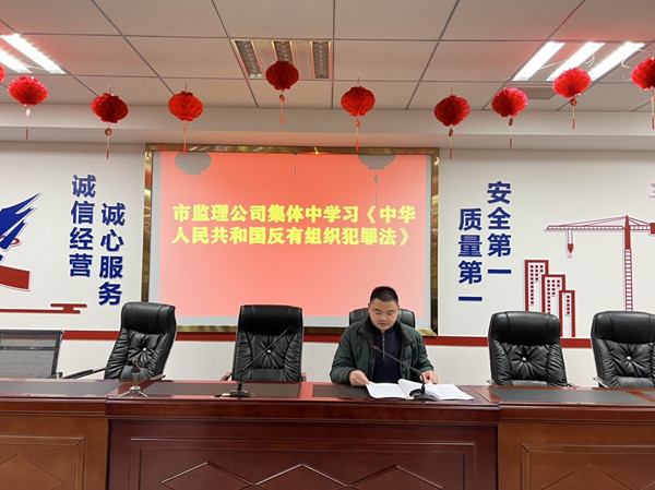 一是认真组织学习。市监理公司通过召开党支部、二级机构专题学习会,认真组织公司党员、职工学习《反有组织犯罪法》主要内容,同时积极督促广大职工开展自主学习,引导全公司上下深刻领会该法出台的背景及重大意义,深刻理解和正确把握《反有组织犯罪法》主要内容,积极推动2023年常态化扫黑除恶斗争工作。