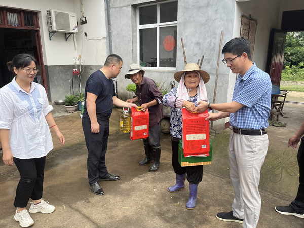 随后,在村委的带领下,公司一行人还进行了入户走访慰问活动,在脱贫户家中,帮扶人与脱贫户进行了亲切交谈,详细了解了他们的生活、生产及身体健康状况,鼓励大家用勤劳的双手增收致富。最后,为提前祝他们端午安康,我们还亲切的向他们送上了新鲜的香粽、大米、粮油等慰问品。