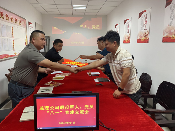 会中,退役军人党员代表分享了各自入伍参军的经历,重温了激情澎湃的军旅岁月,讲述了脱下军装、投身监理工作的奋斗历程,感悟当前工作和学习的收获和体会。从练兵备战到监理工作一线,从守边固防到服务城市建设、监督工程质量。昔日,他们胸怀从军报国理想,用汗水和热血铸就钢铁长城;如今,他们脱下戎装再出发,成为工程监理“特种部队”一员,在项目建设一线再立新功。