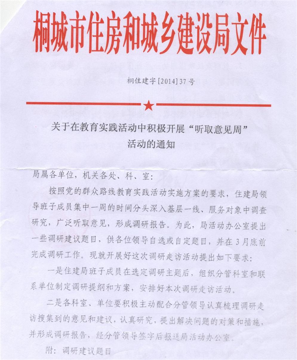 关于在教育实践活动中积极开展“听取意见周”活动的通知