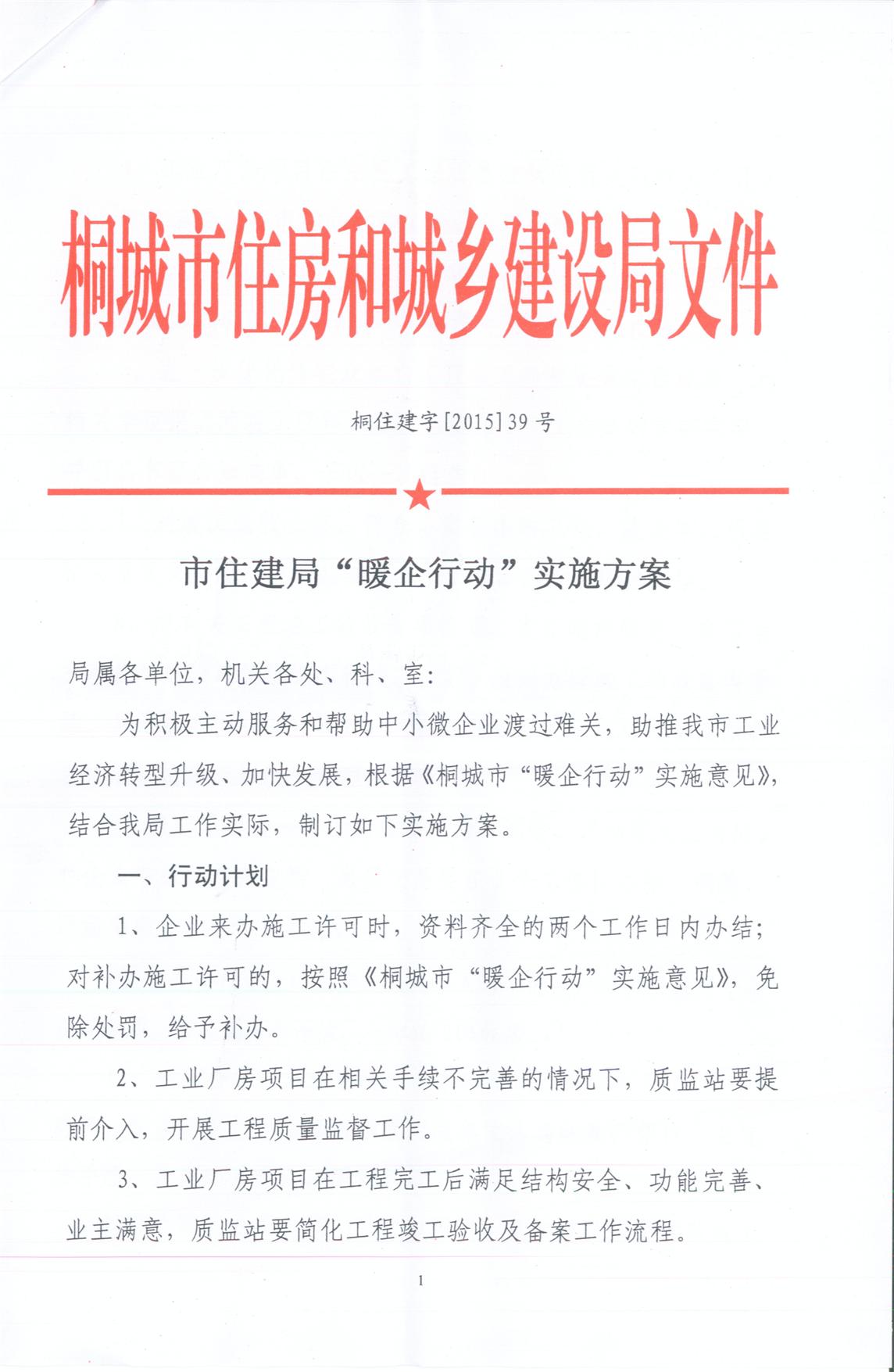 (局发)市住建局“暖企行动”实施方案 桐住建字(2015)39号