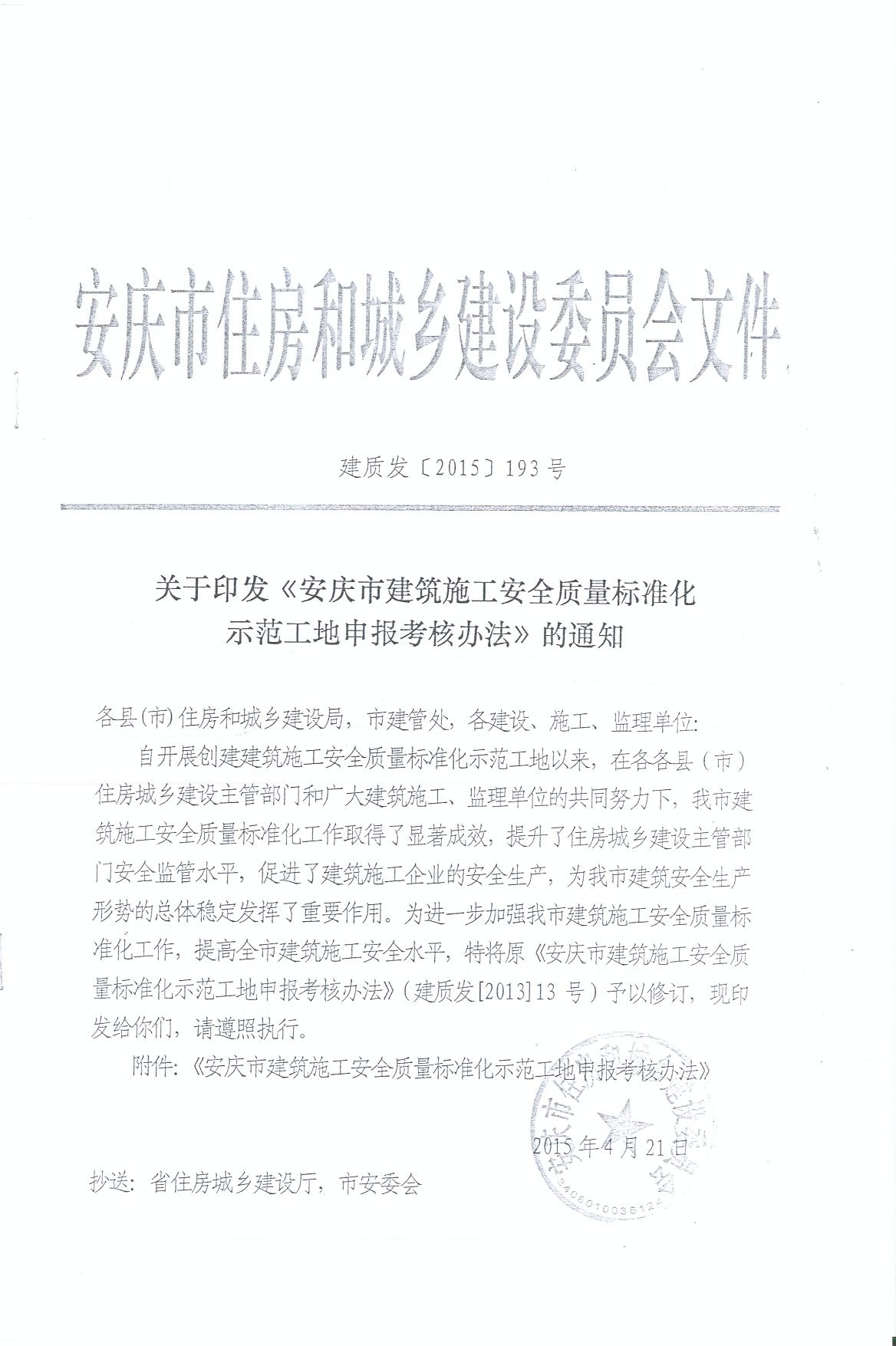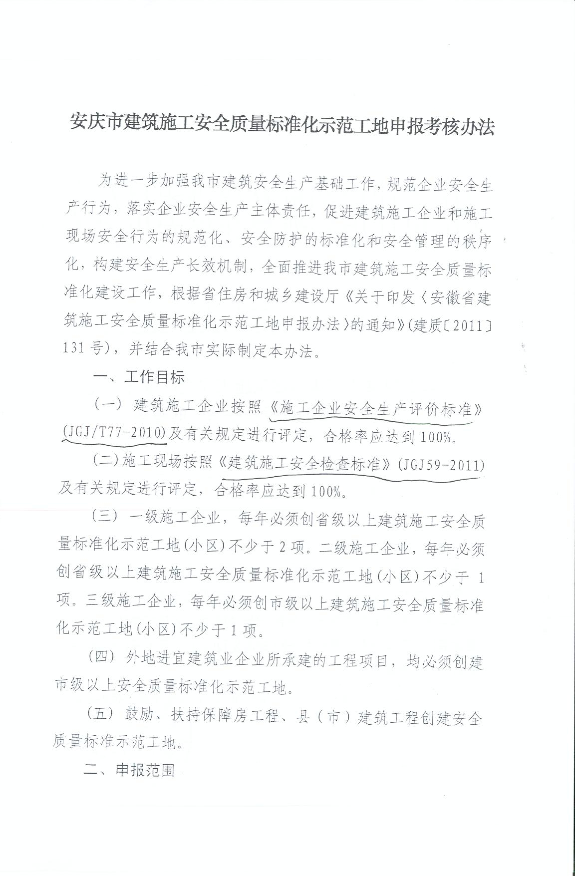 (安庆建委)关于印发《安庆市建筑施工安全质量标准化示范工地申报考核办法》的通知
