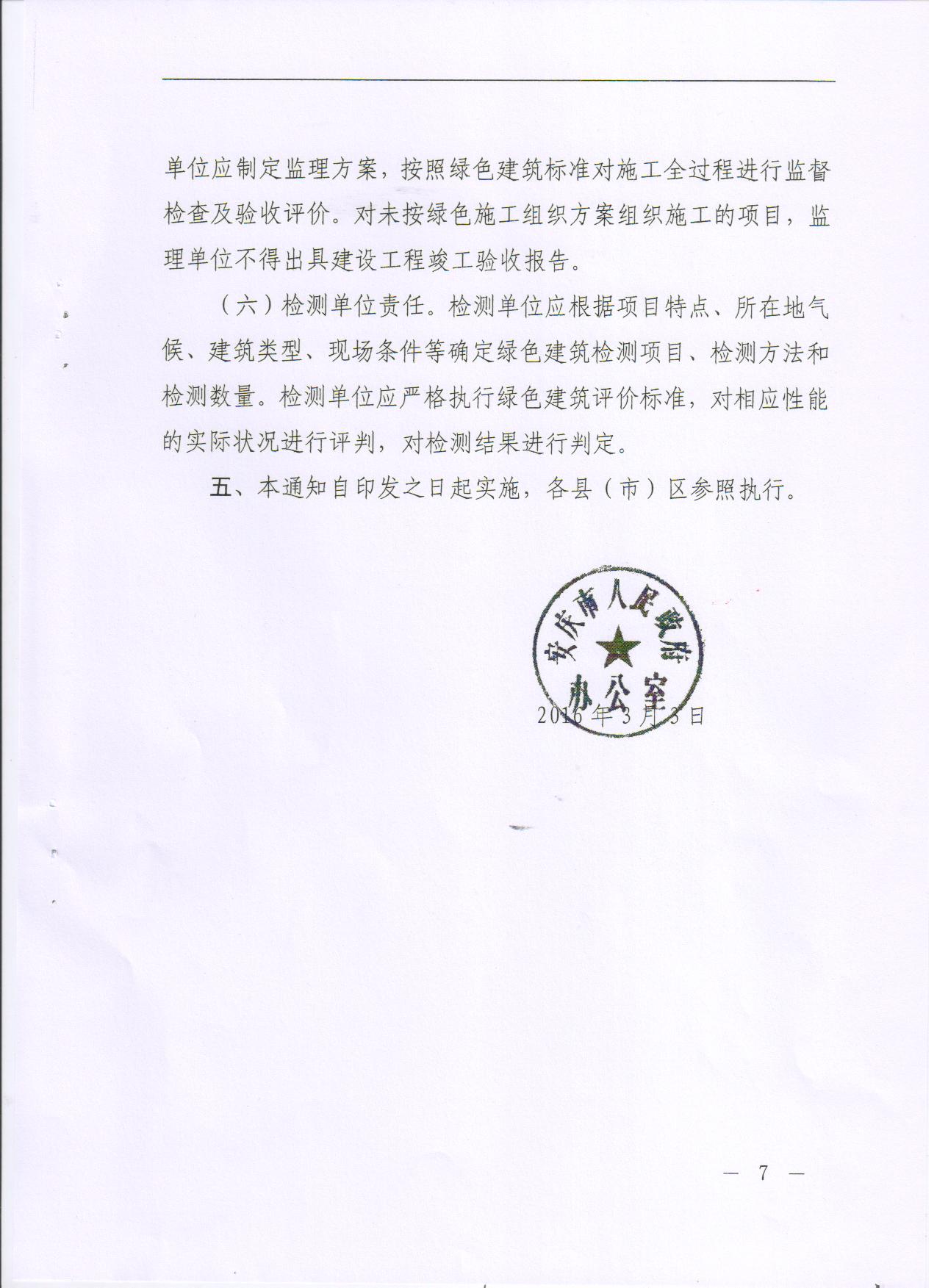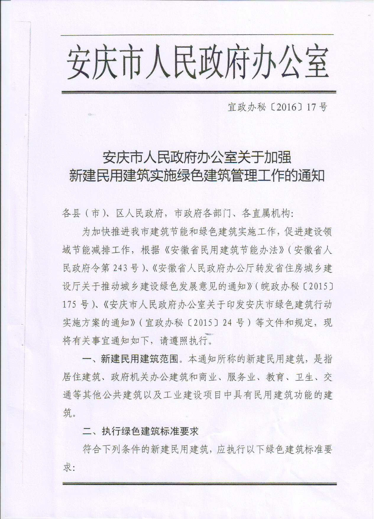 (安庆市人民政府办公室)《关于加强新建民用建筑实施绿色建筑管理工作的通知》